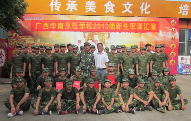 广西华南烹饪学校是华南地区赫赫有名的厨师学校,是华南区厨师学校中的佼佼者,广西华南烹饪学校2013级新生军训,带给学生们更多的磨砺和成长,相信在军训中,广西华南烹饪学校的新生们将褪去稚嫩,收获成长,为将来的厨师学习生涯打下良好的基础,为自己以后的成功打下良好的基础。也祝愿同学们今后能够在广西华南烹饪学校快乐的学习,健康成长。