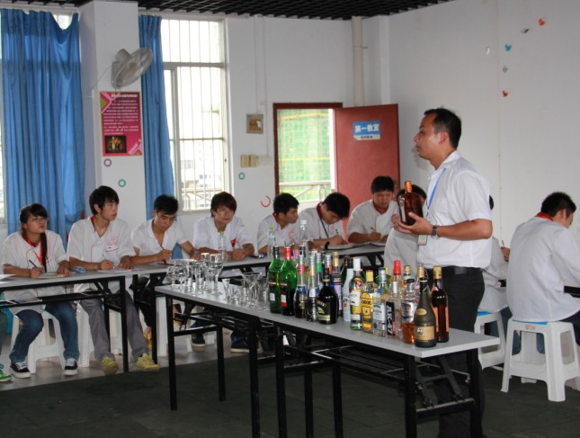 伦老师给学生们讲解调酒技巧