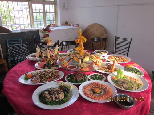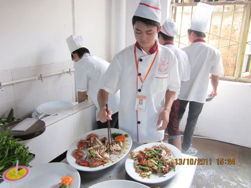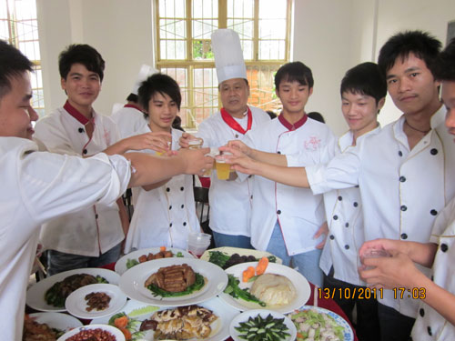 广西华南烹饪学校是一所拥有雄厚的师资力量,现代化的烹饪设备,优秀的管理制度,高质量的教育水平的烹饪教育基地。其倾力打造的互动式模拟厨房更是广西首屈一指的烹饪实习基地,为学员提供岗前培训的基地。10月13日,广西华南烹饪学校TC105班的学员们,在明秀校区模拟餐厅进行了模拟宴席,在陈甲午大师全权指导下,由班级分组自主设计菜单,自主采购,学员自主制作美味菜肴。最后,学员们与部分老师欢聚一堂,共同分享了胜利的学习成果。