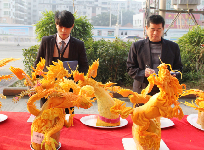 2013年12月31日上午,在岁末来临的时刻,广西华南烹饪学校大学路校区134班进行了雕刻阶段考核,以花、鸟为主题的考核标准不仅综合考核了同学们的阶段学习成果,也给全校师生带来一场惟妙惟肖的雕刻视觉盛宴。此次雕刻阶段性考核不仅为学子们展示了一次自己雕刻作品的机会,更是一次提高雕刻技法的机会。