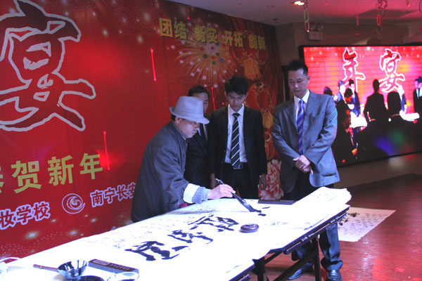 小龙辞岁,骏马迎春,2014的钟声已俏然敲响。元月12日,在这个喜庆的日子里,华南教育集团广西院校的全体教职员工欢聚一堂,共同参与了一年一度的新春年宴。在这里,大家共庆盛会,迎接马年新春的到来。