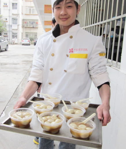 在广西华南烹饪学校,有的同学离开远方的家乡亲人,远赴广西华南烹饪学校学习,追求自己的梦想。在元宵节这天,他们没能回家跟自己的家人团聚,但是,他们在广西华南烹饪学校这个大家庭里一起动手包汤圆,一起吃汤圆,感受节日的气氛,在学校也能有家的温暖。从准备材料到和面,包馅,烧水,煮汤圆,全校师生共同参与到活动中来,整个活动气氛热烈,学生积极踊跃,极乐融融的气氛,体现了和谐的师生情。当汤圆盛在碗里的那一刻,所有人脸上都挂着灿烂的笑容,吃在嘴里,甜在心头。