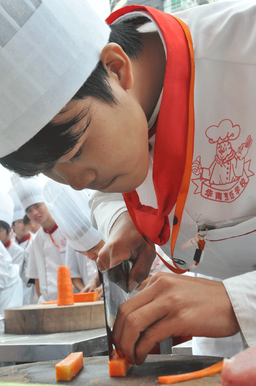10月28日,广西华南烹饪学校第十六届刀工大赛,在广西华南烹饪学校大学路校区举办。此次大赛有来自大厨精英班、金牌大厨班等班级的65名选手参加,开展肉丝、菱形片、中方丁、细丝、棉丝和大刀花等六个项目。