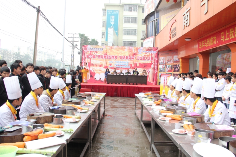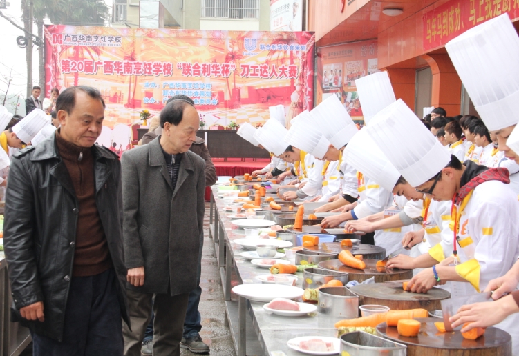 烹调技术离不开“刀、铲、色、香”,因而“刀功”在先,“刀功”是烹调技术的基础,厨师作为餐饮业的精神支柱和领导者,刀工技艺的精湛与否是衡量一个厨师基本功的标准之一。为检验学生对刀工技能的掌握程度,广西华南烹饪学校近期举行了“第二十届广西华南烹饪学校“联合利华杯”刀工达人大赛”,此次比赛的目的是测试同学们的刀工基础,促使同学们充分认识“刀功”对烹调技术的重要性,同时,技能比赛是一个让学生充分展示专业技能的平台,通过比赛,让同学们发现自身的不足,从而达到同学们相互促进,共同提高烹调技术的目的。
