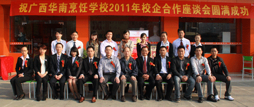 为加强学校与企业间的合作,不断满足企业人才需求,11月15日上午我校与市内11家餐饮企业举行座谈会,共同研究和探讨职业教育与市场人才需求接轨等问题,当天还举行了隆重的互赠牌匾仪式,学校从此成为企业的“人才培养与储备基地”,企业成为学校的“就业与实训基地”,学校努力为华南学生创造良好的学习和实践的平台,为社会培养更多实用的技能人才,有效的促进职业教育与地方经济的发展。