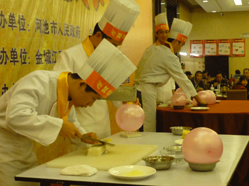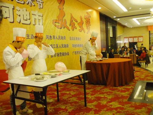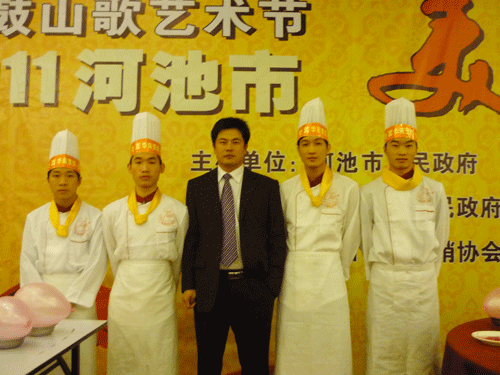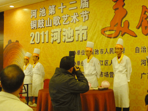 12月9日下午,第十二届铜鼓山歌艺术节2011河池市美食大赛在河池市锦都国际大酒店隆重举办,我校朱伟老师带领金牌班几名学生参加了此次大赛。