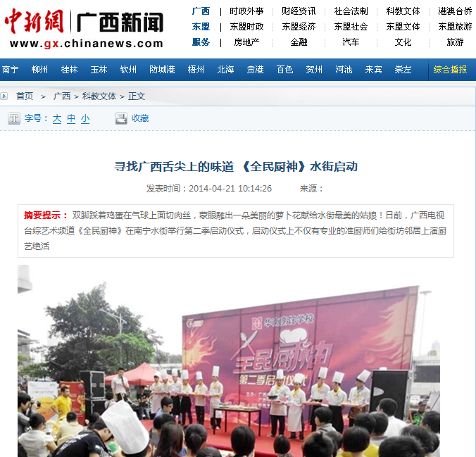 中新网报道:寻找广西舌尖上的味道《全民厨神》水街启动