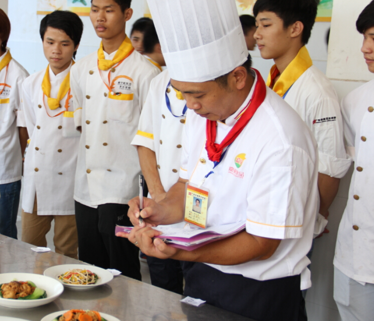 广西华南烹饪学校教务主任黄盛大师在作最后的考试点评中指出,学员们对基本功,特别是火候掌握得相当娴熟,对菜品味道把握得也很精准。最后,黄盛大师对学员的考试表现相当满意,更鼓励学员们再接再厉。