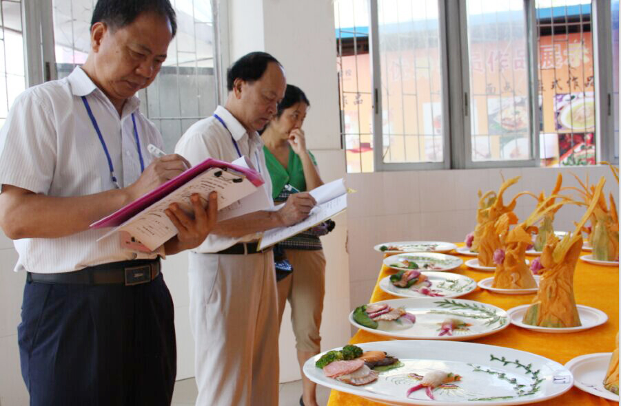 本次考试的评委有:中国烹饪协会理事、广西烹协常务理事、全国餐饮业国家一级评委、广西区烹饪协会常务副会长何逸奎、西园鉴定所刘桂林所长。