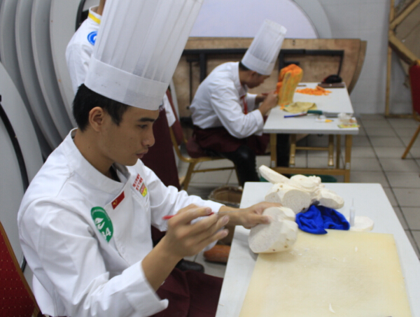 广西华南烹饪学校作为参赛学校代表之一,对此次大赛高度重视,精心准备,参加了食品雕刻、冷拼、热菜个人单项赛中式烹调师项目的比赛。参赛选手以扎实的功底和精湛的技艺,向全国展示了广西华南烹饪学校高超的技艺水平。其中老师组:杨罗银老师获得了冷拼特金奖、黄冲老师获得了雕刻特金奖、卢兴来老师获得了热菜金奖;学生组:潘龙获得了冷拼特金奖、潘雄伟获得了雕刻金奖,黄业获得了冷拼金奖、邱文苗获得了雕刻金奖,同时潘雄伟、潘龙两位同学荣获“全国饭店业青年学生技能标兵”荣誉称号。