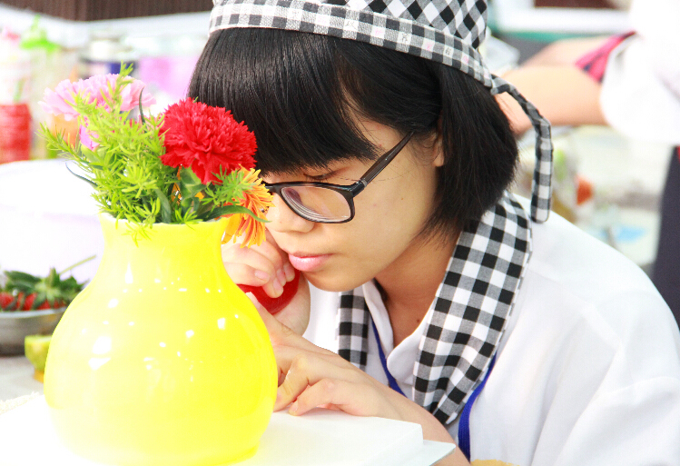 还未走进广西华南烹饪学校第二十届烹饪大赛西点组分赛场现场,一股香甜气息便已洋溢四周。闭上眼睛,深呼吸,一种被幸福包围的感觉。不用多说,您也已经知道我们来到的是西式面点分赛场。在小编享受这份惬意的时候,赛场上可就是另一种气氛了。来自全校的资深烘焙“大师”们,纷纷拉开架势准备迎战,比赛现场紧张而又热烈。