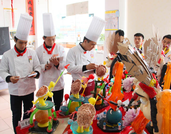 糖艺作为一门艺术,在国际西点市场早已是盛名在外。近日,在广西华南烹饪学校的金牌教室展台上出现了这样一幅绝美的画面,闪亮的糖艺作品活灵活现的摆放在鲜艳的展台之上,让参观的学生顿时尖叫称奇。这就是广西华南烹饪学校糖艺晚班的成果展,他们为这个冬天送上了又一道靓丽的风景线。