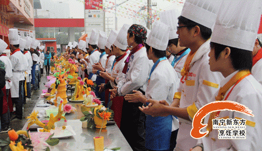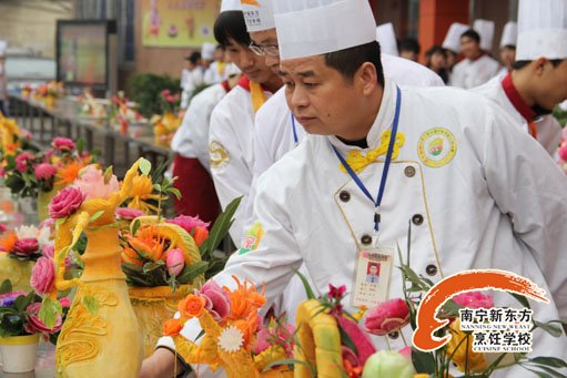 在经过了一小时的激烈竞争之后,比赛终于结束。选手们“妙手生花”,“百花绽放”,他们看着自己的作品,一种成就感油然而生。因为他们知道选择来广西华南烹饪学校学厨师是正确的,是广西华南烹饪学校让他们找到了自信,是广西华南烹饪学校给了他们一个自由发挥的舞台,是南宁新东方烹饪学校给了他们一个遨游厨艺天空的起点。比赛一结束,评委纷纷亮相,评论着每位选手的作品并给予打分。当他们看到学生们能有这样的成绩,都不自觉地会心一笑。