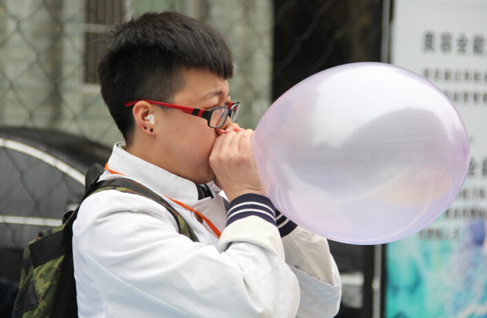 奔跑吧“夹气球”,欢快的毽子踢起来,一声声加油喊破天,“八仙过海”闹元宵。传统的拔河比赛、吹气球、摸“福”等引得同学们发出一阵阵愉悦的笑声。踢毽子、顶矿泉水中的女同学们,用曼妙的猫步带给了华南学子的欢乐心情。在这些精彩的节目中,最吸引人眼球的,还数师生吹气球比赛。各班级挑选1人,一分钟内吹爆5个气球,各种表情,各种动作乐得同学们开怀大笑。