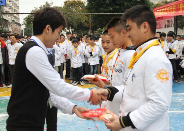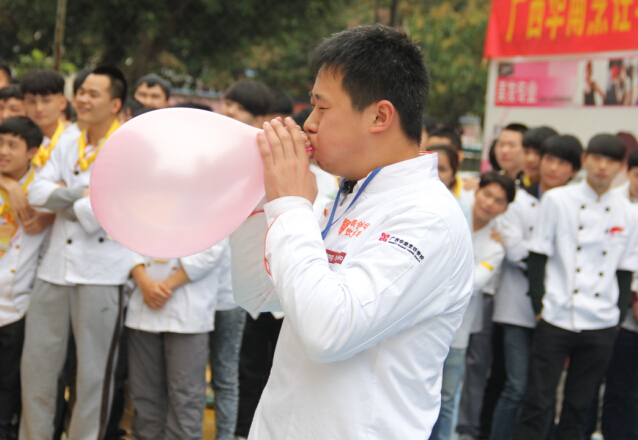 下午2点半,广西华南烹饪学校操场上传出的一阵阵欢乐的掌声、笑声划破了早春的寒冷,融化了节日的宁静。同学们穿着整齐的厨师服在操场上集中,大会上学校负责人朱伟做了重要的讲话:“他代表学校的领导老师衷心祝愿同学们元宵节快乐、学业进步,元宵活动玩的开心,同时希望今后学校多开展这样有意义的活动,让同学们享受一场场视觉盛宴”。