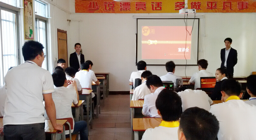据了解,此次到我校招聘宣讲的南宁57°C湘是广西首家分店,未来还会在柳州、桂林等地开设分店。招聘宣讲会上,王总对大家的疑问进行一一回答。他谈到不管是在哪种企业,一直坐在那里不去争取,如何得到发展的平台?要看清自己,找到自己的定位,努力向前迈进。最后,王总诚挚欢迎同学们加入到南宁57°C湘这个时尚活跃的企业。