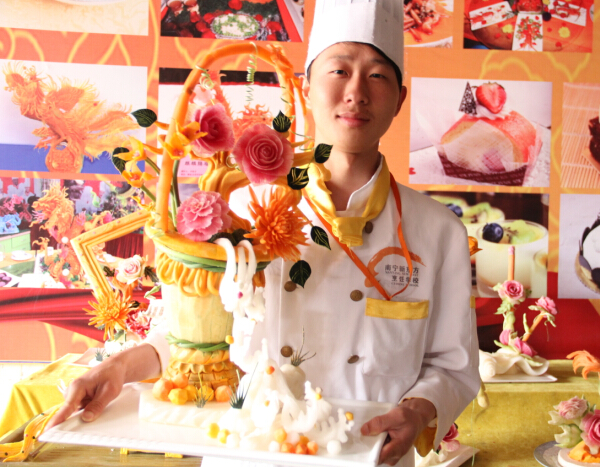 三月我校大学路校区将举行“花王争霸”赛,对广西华南烹饪学校参赛选手来说这个是一个学习交流,锻炼自己、展示自己的机会。进入大赛倒计时阶段,广西华南烹饪学校的同学们忙着赛前“热身”,练雕刻技艺、探讨雕刻技巧……忙得不亦乐乎!