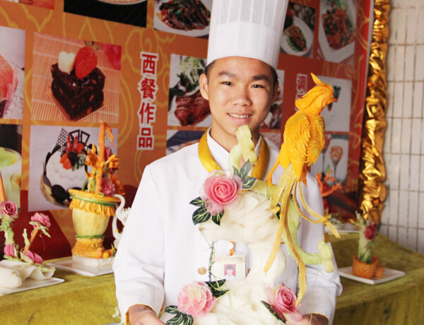 “花王争霸赛”一个更大的舞台更广的视野,同学们为此激动着、兴奋着、努力着,不管是课上还是课下,不管是教室还是宿舍,不管是烹调还是雕刻,都有他们奋斗着的身影。同学们用他们的雕刻刀一点一滴的记录着成长。