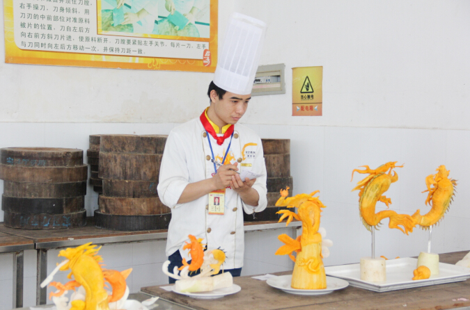 雕刻作品展风采,阶段考核出创意,相信在每一次的阶段考核之后,广西华南烹饪学校的学习风气将会更加浓厚,同学们的烹饪技能将会再上新台阶。浓厚的学习氛围,优秀的师资队伍,广西华南烹饪学校用实力证明学厨师首选广西华南烹饪学校!