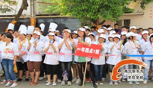 早上8:30,全体学员就到场集合,万玲老师主持介绍了出席的领导、嘉宾,全体起立,升国旗奏国歌,一片祥和。随后朱伟主任致开幕词,校长做动员讲话,最后由万玲老师宣布比赛正式开始,广西华南烹饪学校学员顿时一片欢呼!重在参与,却又力争第一,年轻的学员谁都有种不服输的精神。