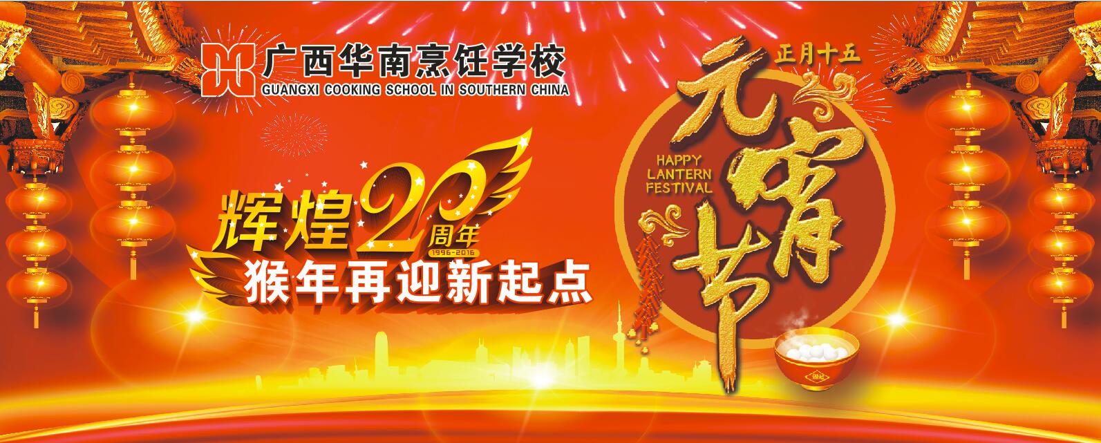 2月22日(正月十五)8:00,广西华南烹饪学校中尧校区举办猜灯谜、包汤圆、吃元宵及歌舞、赏烟花等活动,全体师生欢度元宵佳节。