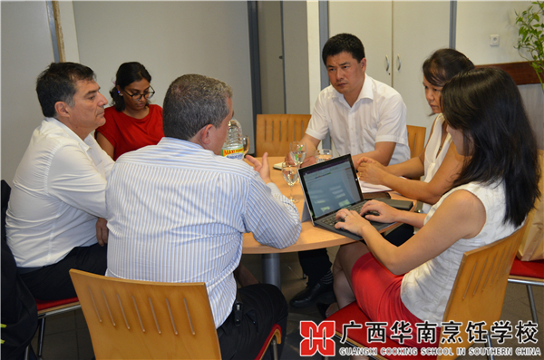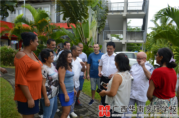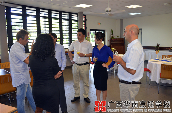 留尼汪成人职业培训学校的学校领导亲切地接待了我校两位老师,引领他们参观了校园、实操大厅、巧克力教室、法国西点教室等,朱伟大师对广西华南烹饪学校的发展以及中国的饮食文化与留尼汪成人职业培训学校的老师进行了分享交流。朱伟表示:“最能引起人心灵共鸣的话题就是美食,美食可以作为人与人沟通的桥梁,虽然身在不同的地域,讲着不同的语言,但是对美味的追求是相同的”。