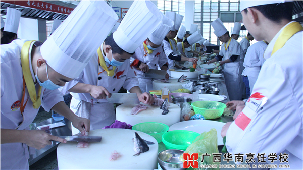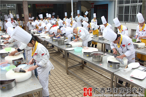 3月15日,广西华南烹饪学校刀工与热菜比赛在中尧校区拉开帷幕。此次刀工技能比赛着眼于学子们刀工技艺的比拼,检验学校教学成绩,考核学生原料初加工、刀工的精细加工、烹调方法运用等方面的知识与技术能力。此次刀工比赛由各班选取10人左右组成参赛队伍,比赛内容为每位选手取约500-750克/条的生鱼依粤菜起豉油皇生鱼之法与要求,完成鱼的初步加工与起骨处理(背部下刀取内脏),作为刀工部分的考评送检,送检后的鱼由参赛者领回再烹制成一道以原料为主的菜肴。