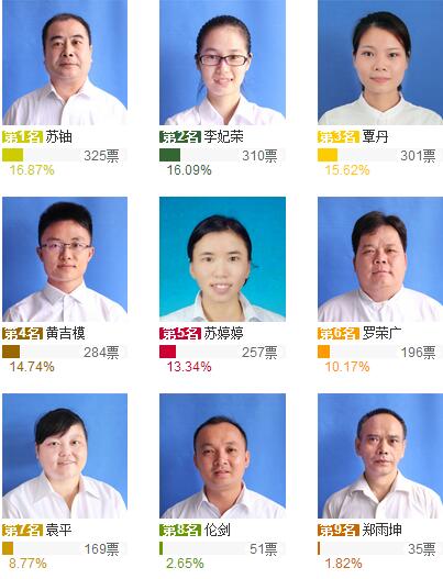 从8月19日上午广西华南烹饪学校优秀教师评选投票活动开始,至今已经过去了4天了,截止至8月23日7时,共有8190人参与投票,其中苏铀老师以325票,暂居优秀教师第一名。唐海涛老师以636票,暂居优秀班主任第一名。希望其他老师不要气馁,并积极参与。还没有参与投票的同学赶快拿起手机为你心中的优秀老师投上关键的一票,广西华南烹饪学校,有你更精彩。