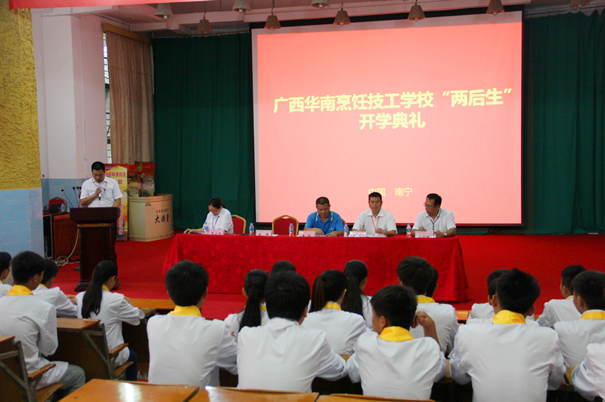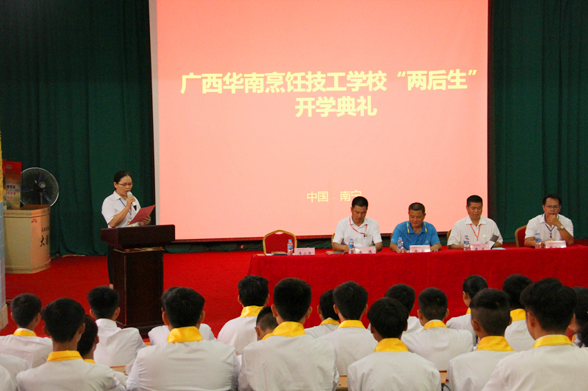9月5日上午,广西华南烹饪学校中尧校区大礼堂,来自隆林各族自治县贫困家庭的54名未考入大中专院校的初、高中毕业生参加了“两后生”技能培训开学典礼。