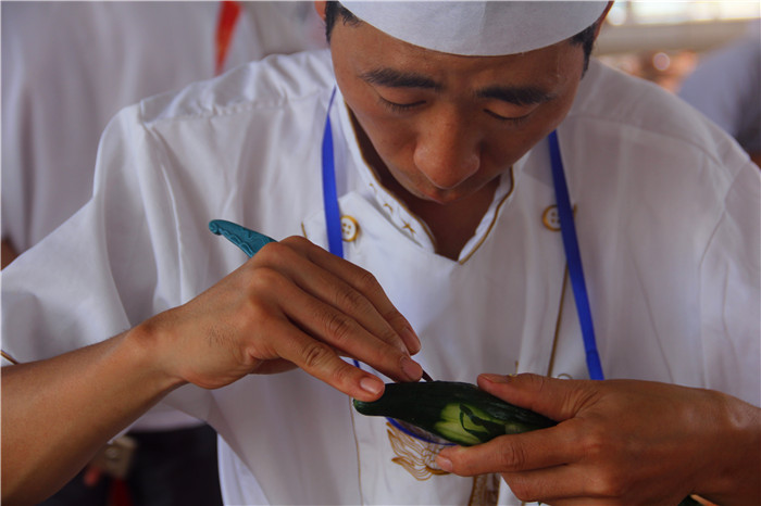 参数选手正在雕黄瓜