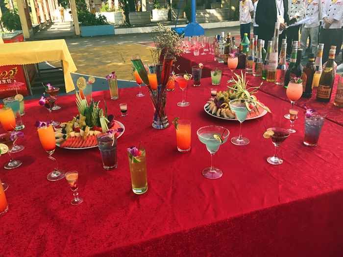 11月4日,在广西华南烹饪学校操场上,当一杯杯色彩艳丽的鸡尾酒摆放出来的时候,它们成功地吸引了一批批学子驻足欣赏。或许你无法想到,完成这些作品的学子们在1个月前是如此青涩,他们对调酒知之甚少,凭着对美食非比寻常的感觉进入广西华南烹饪学习。今天,当他们轻车熟路地完成蓝礁湖、长岛冰茶这些时,他们用几个月来日复一日坚持不懈的实操练习印证了“持续的练习是持续进步的基础”其中的真谛。