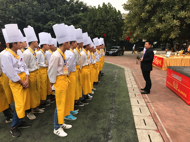 3月3日,广西华南烹饪技工学校厨艺擂台赛第三场在中尧校区操场上如期举行。本次比赛是由金牌14班攻擂,金牌13班守擂。