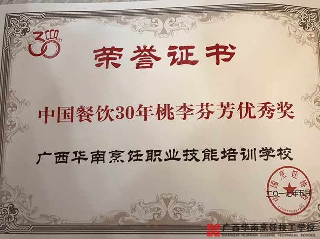 随后,会上隆重表彰了30年来为全国餐饮行业发展做出突出贡献的先进单位和个人。广西华南烹饪技工学校荣获中国餐饮30年桃李芬芳奖。