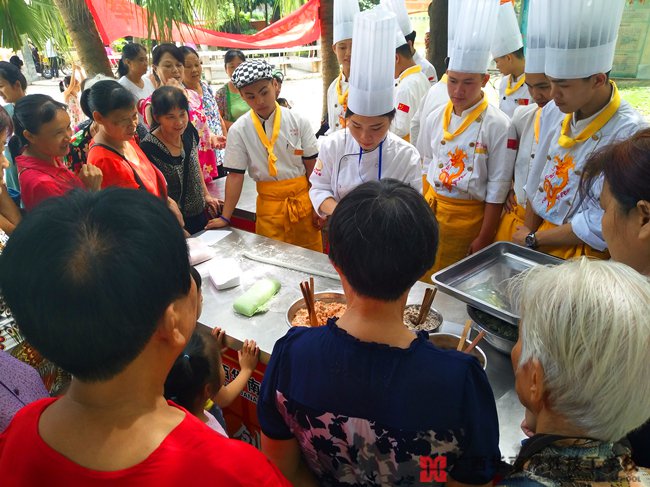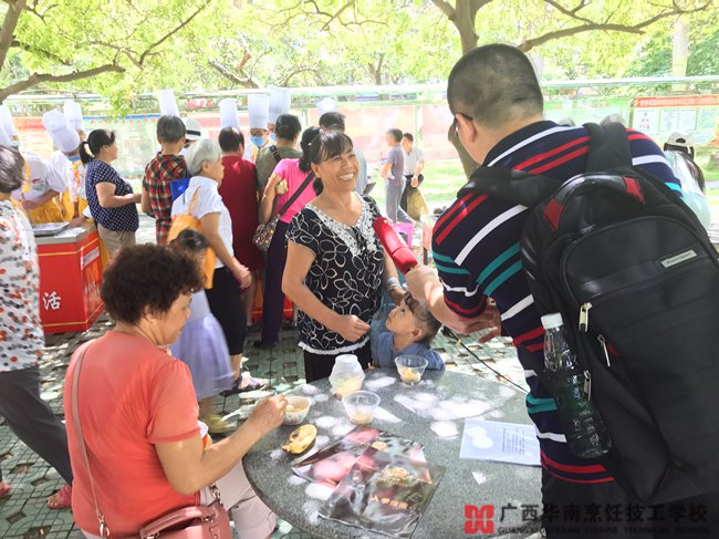8月18日上午,广西华南烹饪技工学校携手南宁电视台《新闻社区》栏目,一同来到南宁市新竹社区,为社区的居民展示烹饪技法。