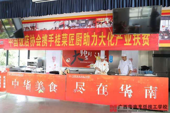 中国饭店协会携手桂菜匠厨何逸奎助力广西大化产业扶贫。近日,我校国家元老级烹饪大师何逸奎受中国饭店协会邀请,利用广西大化县优质食材,结合大化县实际情况,量身设计并制作了的8道菜品。本次选用了七百弄鸡、七百弄山羊、红水河大头鱼、旱藕粉。这次活动是我校助力产业扶贫板块的又一次深耕。