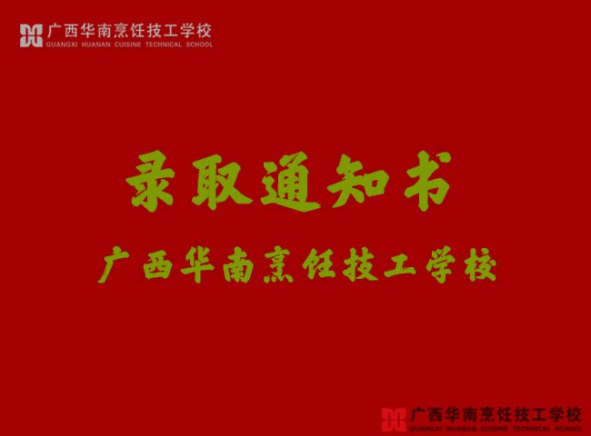 我们已经将录取通知书下发到你的内心深处,只等你的签收,并在它的带领下来到广西华南烹饪技工学校挑选你中意的学习方向和专业。