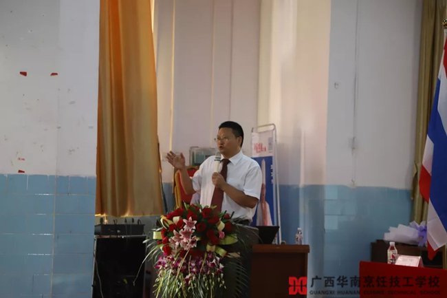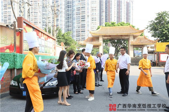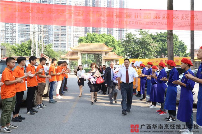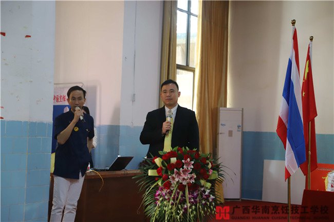 9月12日上午,中泰美食学习班开班仪式在我校中尧校区举行,长安开元教育集团总经理、广西华南烹饪技工学校校长翟维铁,南宁优美西点学校校长赵志权,泰国川登喜国际烹饪学校校长塔南帕,马来西亚成功礼待大学院长黄志强等领导嘉宾共同出席了开班仪式。