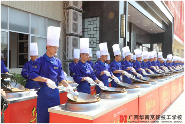 据了解,随着就读人数的快速增长,广西华南烹饪技工学校的发展进入了超速发展时期。为扩大办学规模,学校筹划新建了东盟校区,累计投入建设经费5千多万元,办学条件发生了翻天覆地的变化,校园面积由原来的46亩扩大到92亩,配套设施完备,功能齐全;新校区建成后教师队伍翻倍壮大,办学水平不断提升,在校生人数将达到3000人以上。