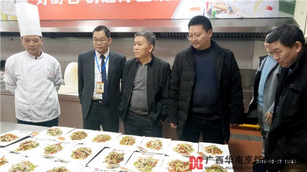 在我校实操教室,领导们驻足观看,对学生展现出来的精神风貌给予了充分的赞扬,并肯定了广西华南烹饪技工学校办学以来取得的突出成果,对于先进的设备设施和规范的教学管理模式给予了认可。