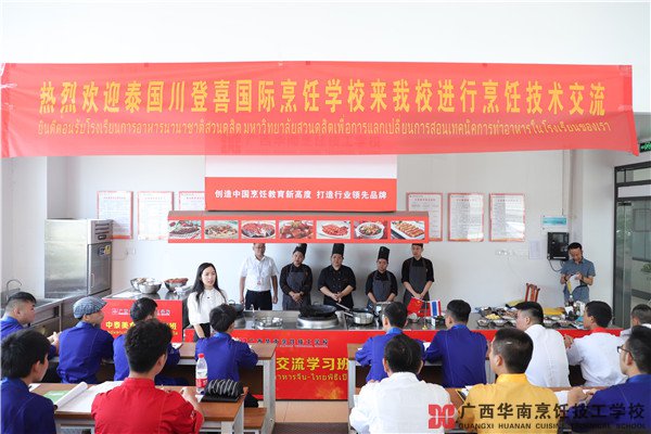 川登喜国际烹饪学校交流团的代表还表示,非常高兴能够到访广西华南烹饪技工学校并与同学们开展座谈会,也希望在未来能够与同学们相聚泰国,相聚泰国川登喜。