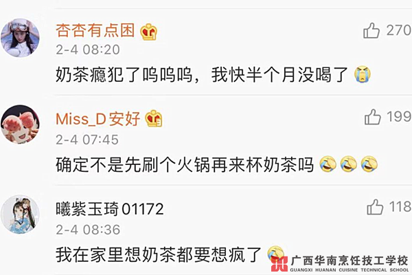 在网上看到了华南烹饪的奶茶培训,觉得师资力量、教学品种等综合方面都非常适合自己,于是便很快报名学习。
