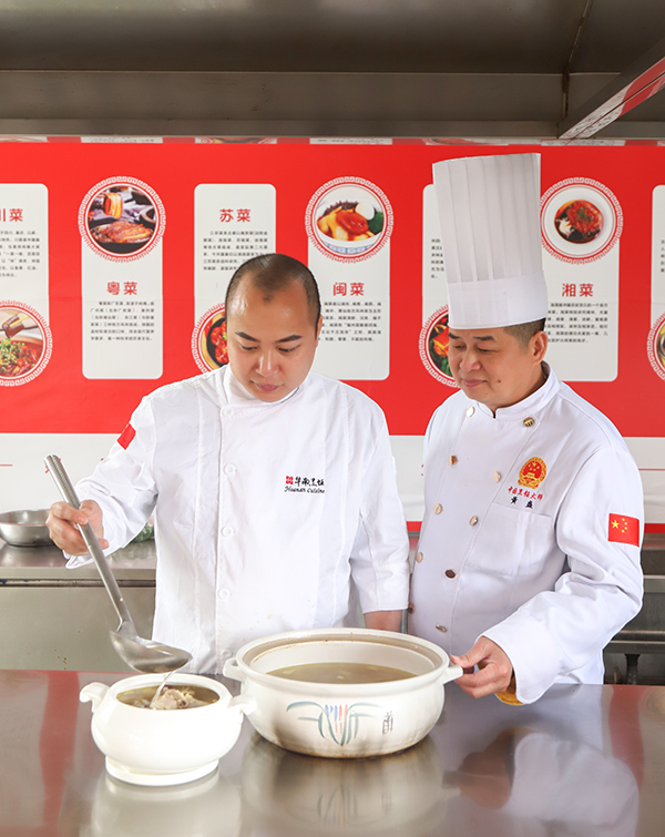 近日,广西华南烹饪技工学校来了一位一个月烧腊、广式靓汤班的学员覃友。见到覃先生时,他已经跟着黄盛大师学习了半个月的广式靓汤,近30个品种,当天是私人订制课程的最后一节,两款品种的靓汤。