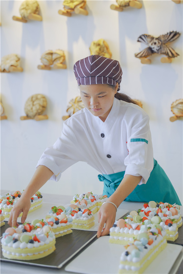 “我特别喜欢面包,感觉自己能做出好的成品,很开心。”当面粉在她手里成为一件件精美的食物后,她有了学习的成就感,努力地一步步勇往直前。
