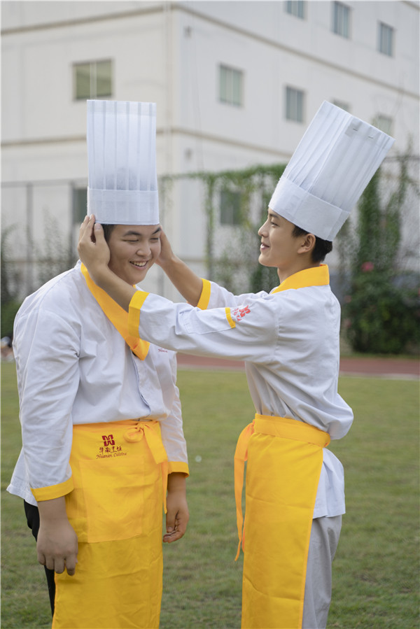 问及在校园生活是否还适应,贾益留、贾百强一致表示:“比想象中好得多。”他们原本以为学厨会很枯燥很累,来到学校后才发现,原来学厨也可以有这么丰富多彩的校园生活。