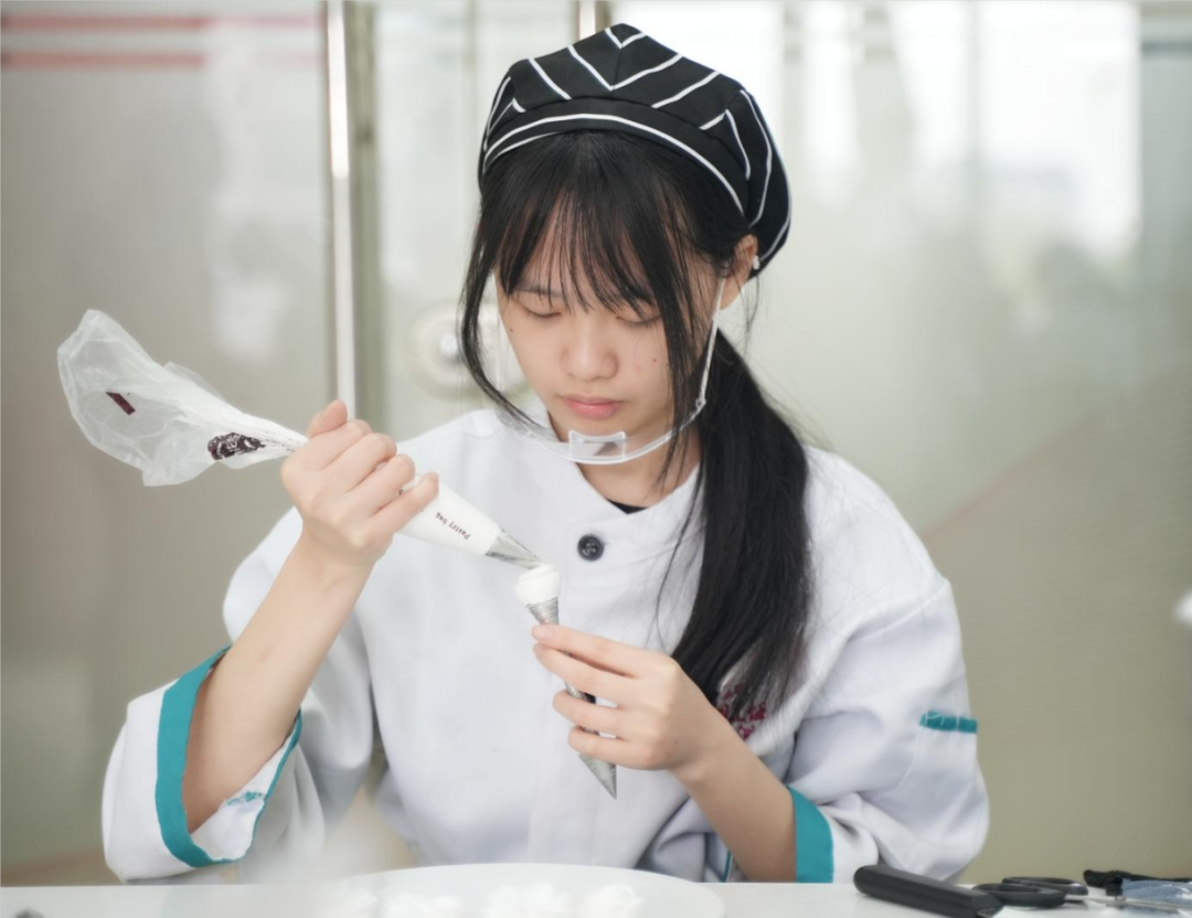 在学习的过程中,与同学们相互鼓励,共同进步。她不仅掌握了面包蛋糕的基础知识和制作技巧,还学会了自己创新,不断挖掘自己的潜力。