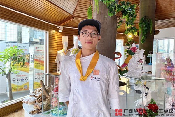 之后,家里就积极为他寻找合适的学校与专业,并选择了广西华南烹饪技工学校,校园环境十分优美和教学设施设备先进又齐全,这才是符合他们心目中的技术学校。