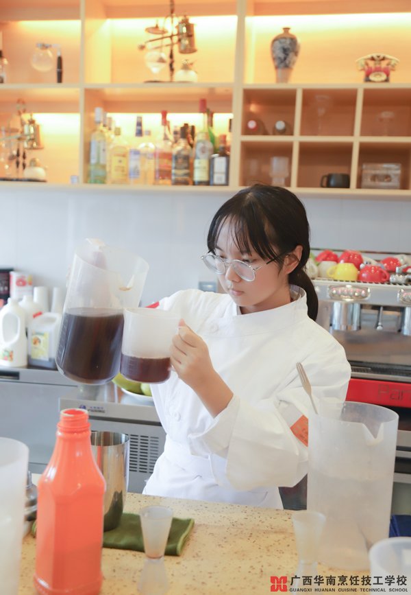 广西华南烹饪技工学校采用的是小班制实操教学,学员自己动手操作,掌握得更快更牢。优质的原材料免费使用,配合进口设备和专业老师指导,让学员以最快速度进入状态,把握核心技术。想学奶茶饮品的小伙伴们,欢迎加入华南烹饪吧!