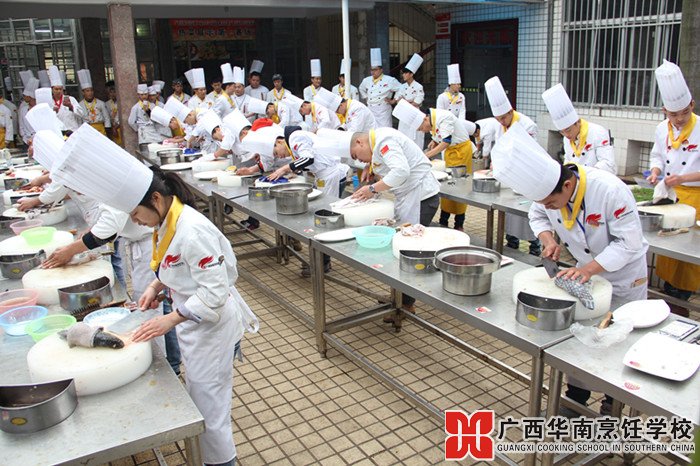 俗话说得好,台上一分钟,台下十年功。来到广西华南烹饪学校之前,对烹饪的理解就是会做菜就行了,然而并非我想想的这样简单。在这里才了解原来烹饪是多么博大精深,而且并不是能拿刀就行,还要会拿怎么拿,一些基本