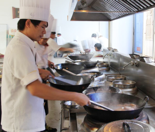 2、减少选择爆炒、煎炸、过油、过火的菜式。各种烹调所需要的油温有区别。如爆炒需要将近300度的温度,这个温度必然已经让锅中的油大量冒烟。那些锅里着火的操作,更会超过300度油温,增加油烟的产生。