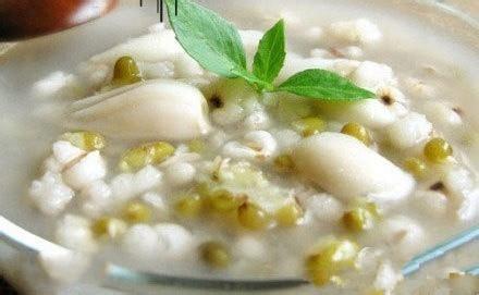 百合绿豆汤:取百合和绿豆适量煎汤,凉后代茶饮,有清热祛暑、润肺止咳之功,适用于阴虚内热之人饮用,治干咳久咳。